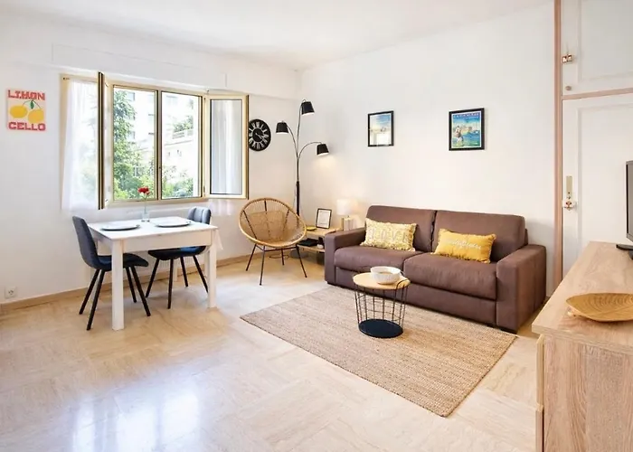 Das Charmant Studio En Bord de Mer Nizza verfügt über ein einladendes Schlafzimmer sowie ein geräumiges Wohnzimmer, das zum Entspannen einlädt. Die voll ausgestattete Küche mit Kühlschrank und Kaffeemaschine sorgt dafür, dass kulinarische Wünsche unkompliziert erfüllt werden können.